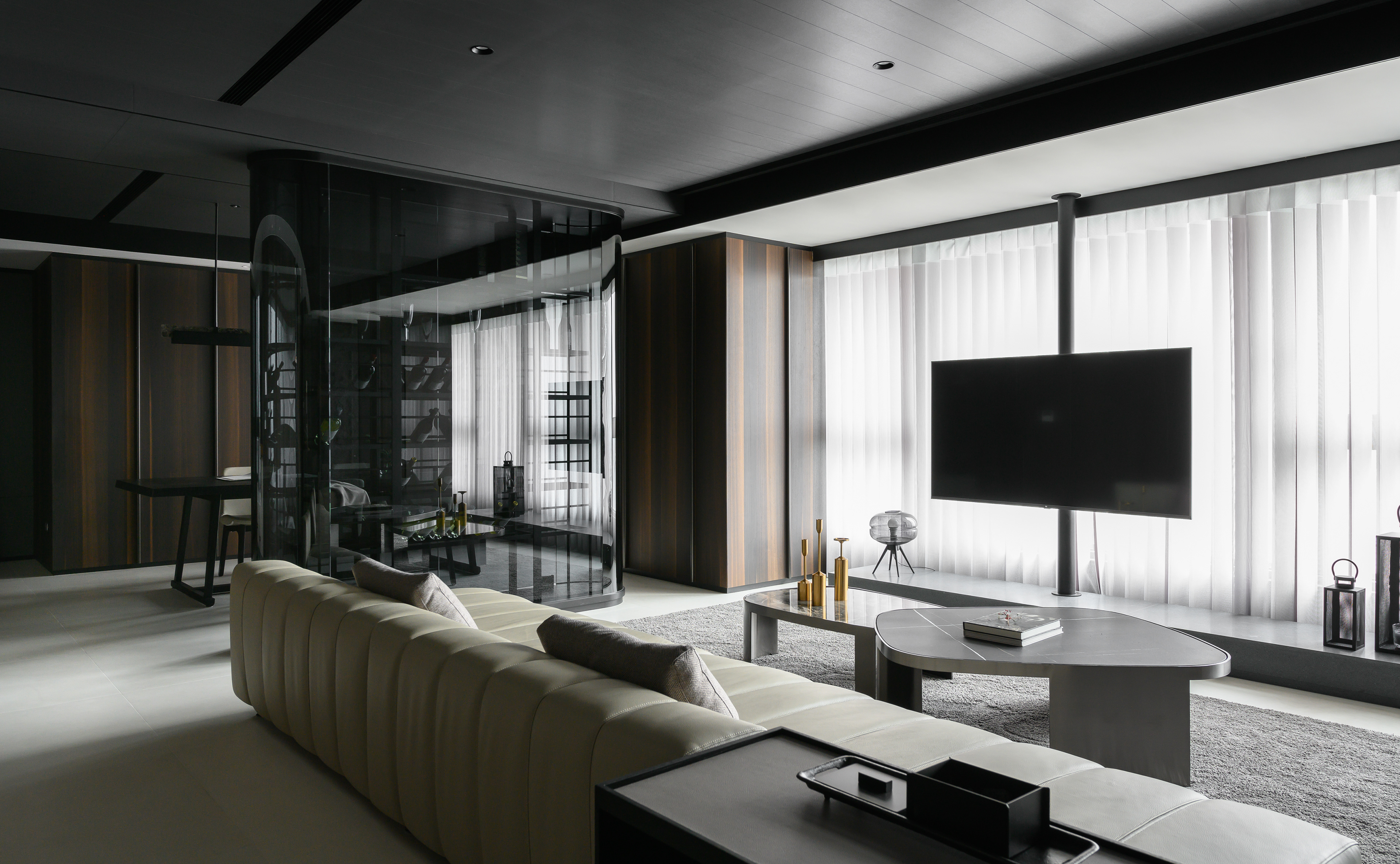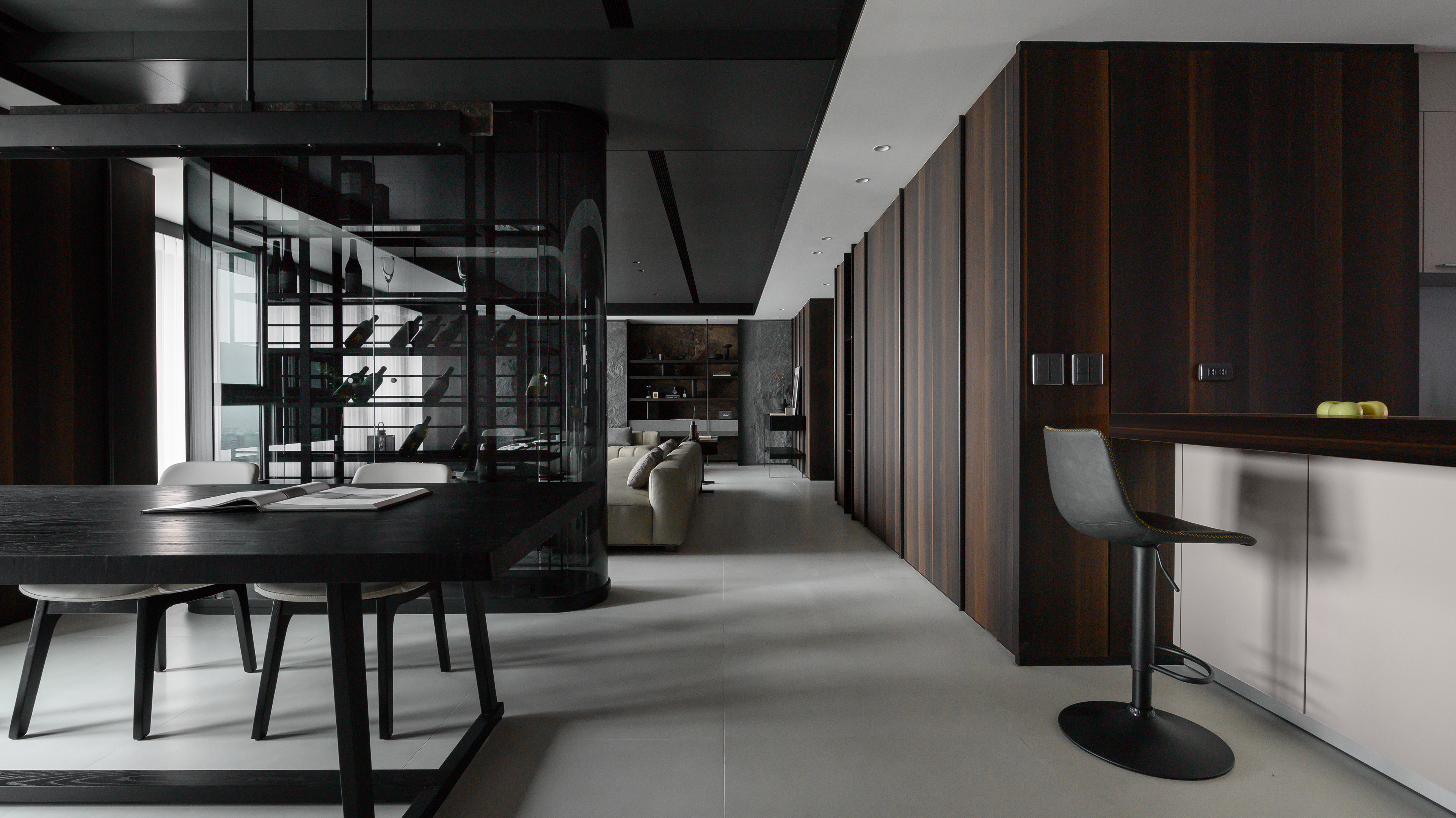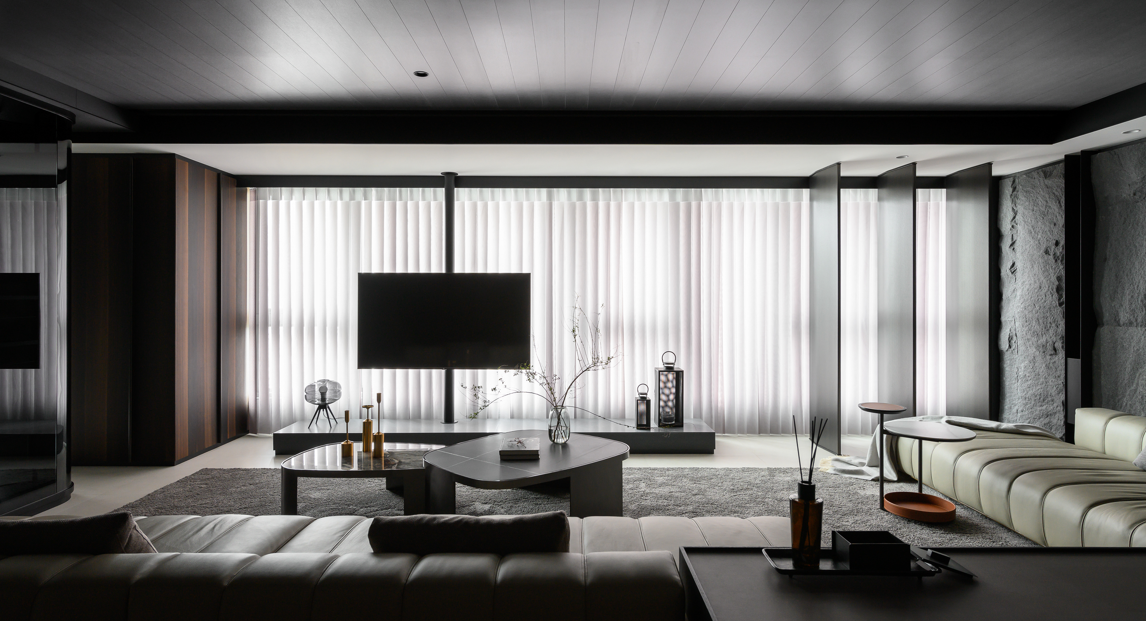 MASR 作品|JASON Living 是將生活與靜心交織的設計場域。空間以開放式架構延展光線與動線,灰白色調中蘊藏溫潤的木質呼吸,創造出一個適合沉澱、交談與放空的現代靈性客廳,讓居住者在日常中重拾儀式感與存在感。