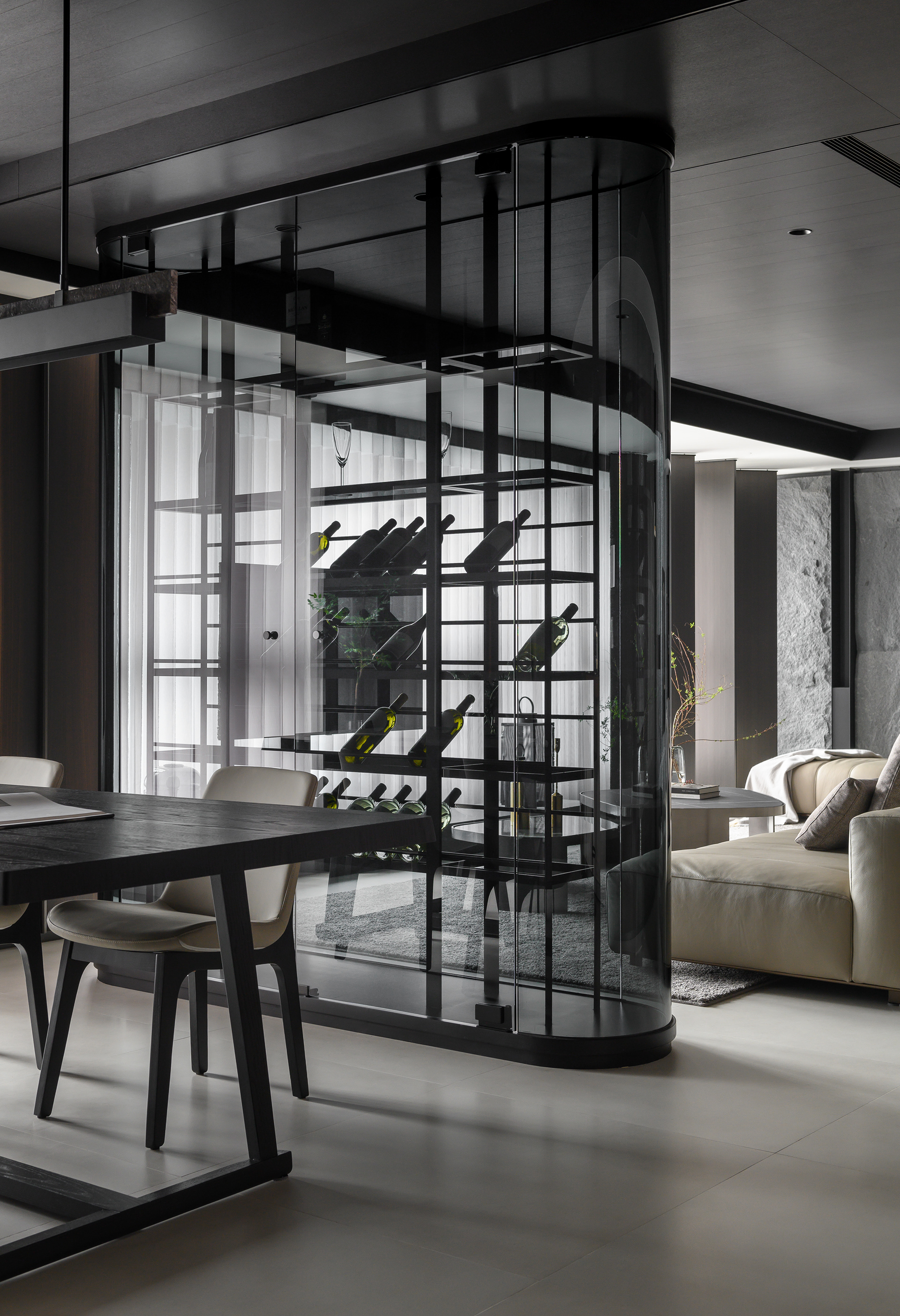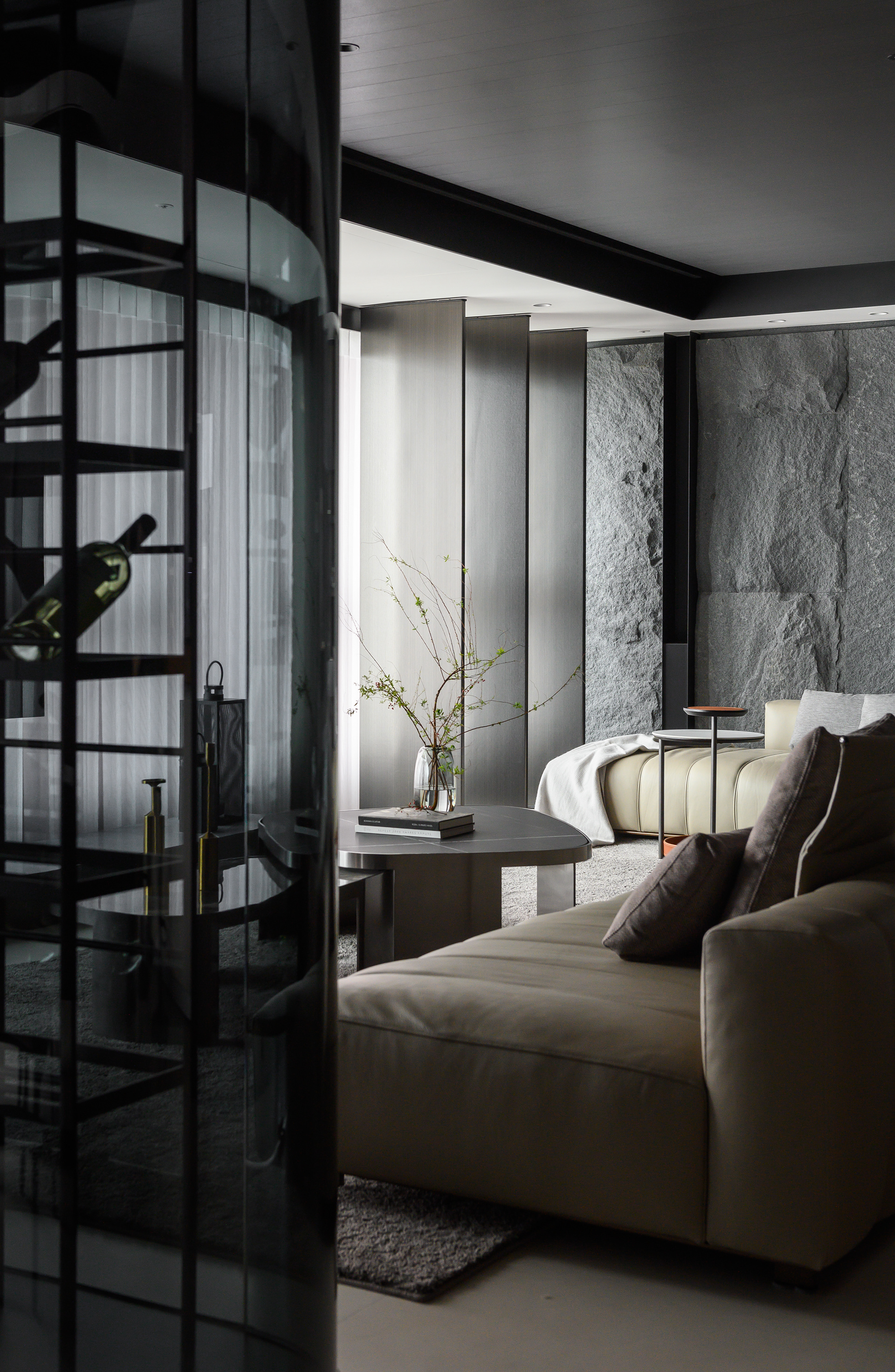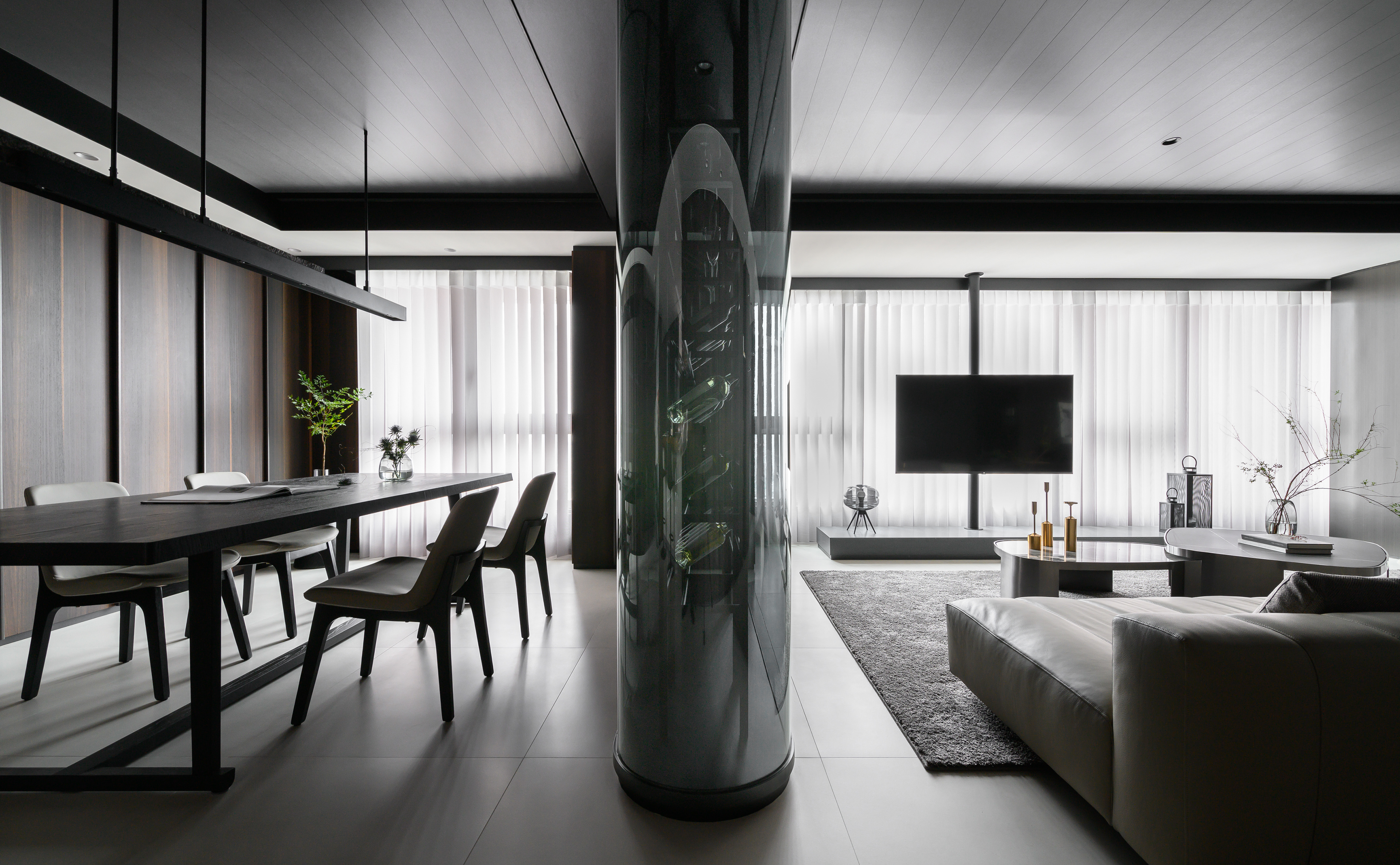 MASR 作品|JASON Living 是將生活與靜心交織的設計場域。空間以開放式架構延展光線與動線,灰白色調中蘊藏溫潤的木質呼吸,創造出一個適合沉澱、交談與放空的現代靈性客廳,讓居住者在日常中重拾儀式感與存在感。